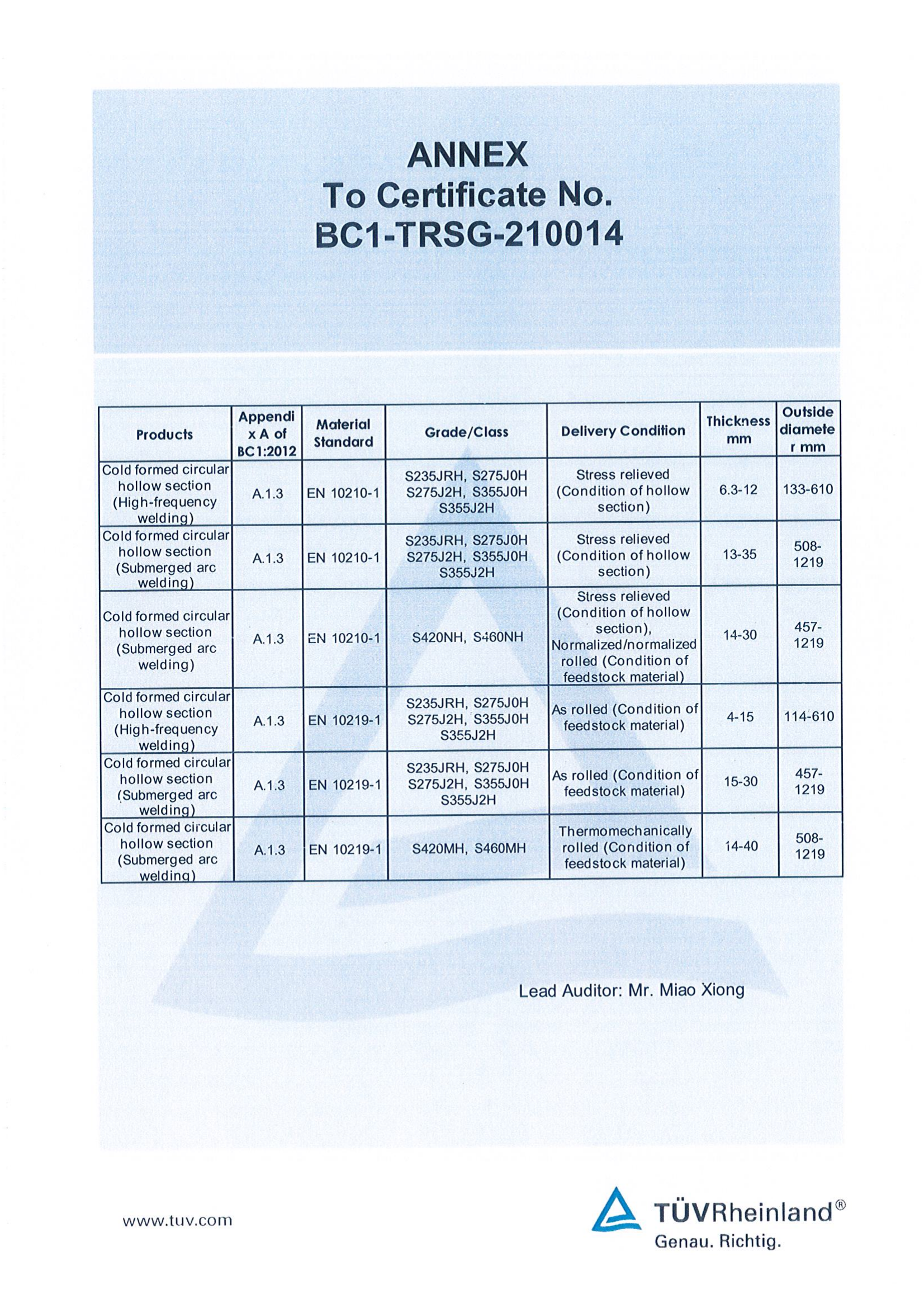公司現有17條新型的自動化鋼管生產線,包括Φ73-660.4高頻直縫焊鋼管生產線14條、Φ406.4-Φ1422.4直縫雙面埋弧焊鋼管生產線3條,并配備有一條防腐生產線,可進行3PE、2PE、FBE、2PP、3PP防腐處理,同時還可提供鋼管深加工服務。公司擁有先進的理化實驗室,可承擔鋼管的各項物理及化學檢測與試驗。公司先后取得了ISO9001質量管理體系認證、ISO14001環境管理體系認證、ISO45001職業健康安全管理體系認證、特種設備制造許可證、API5L和API2B認證證書、歐盟CE認證、俄羅斯GOST認證、中海油入網證、安全生產標準化二級企業等標準質量體系認證。